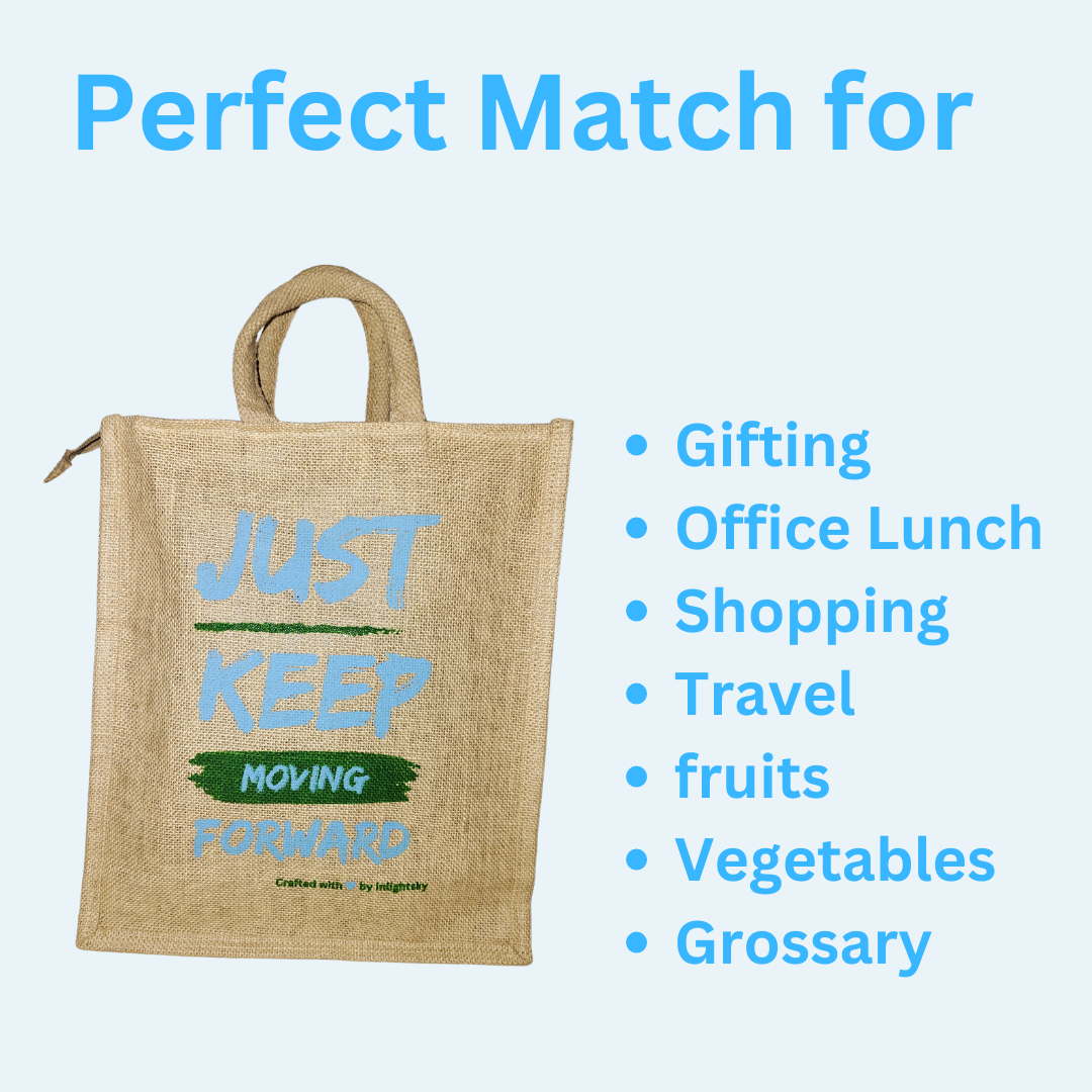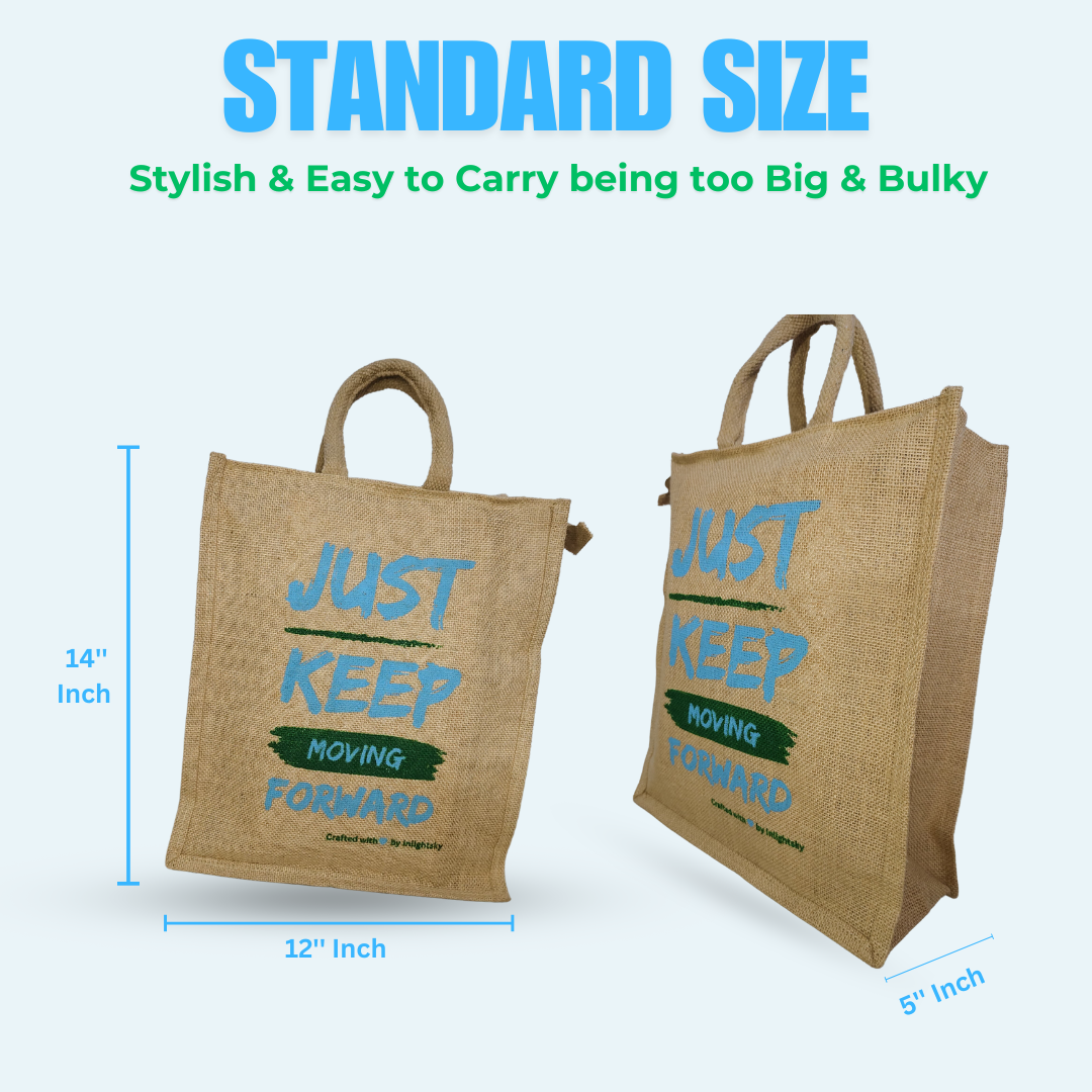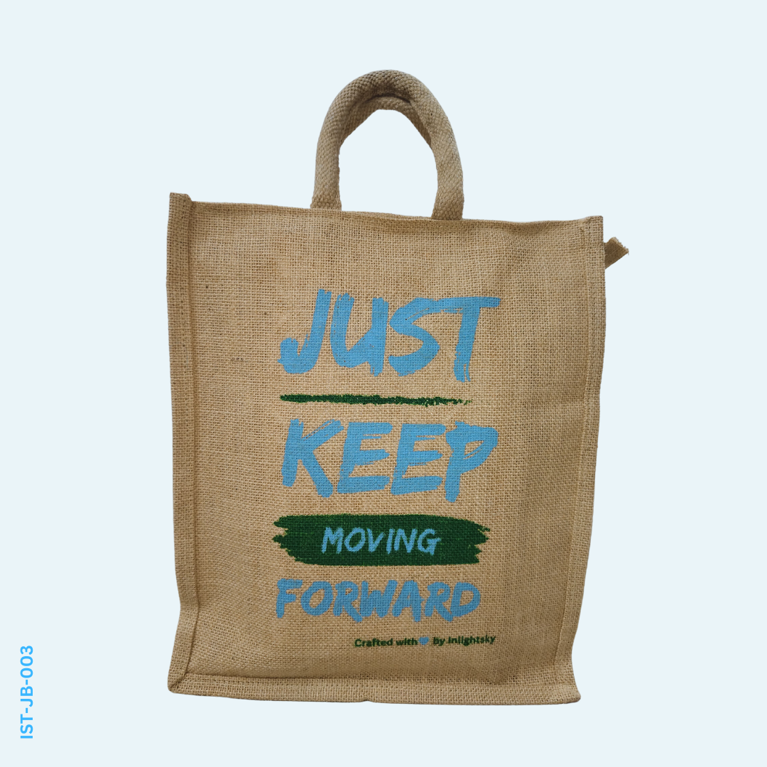 Inlightsky Eco-Friendly Jute Bag – Durable Reusable Tote with Inspirational “Just Keep Moving Forward” Design, Perfect for Shopping, Work, or Everyday Use