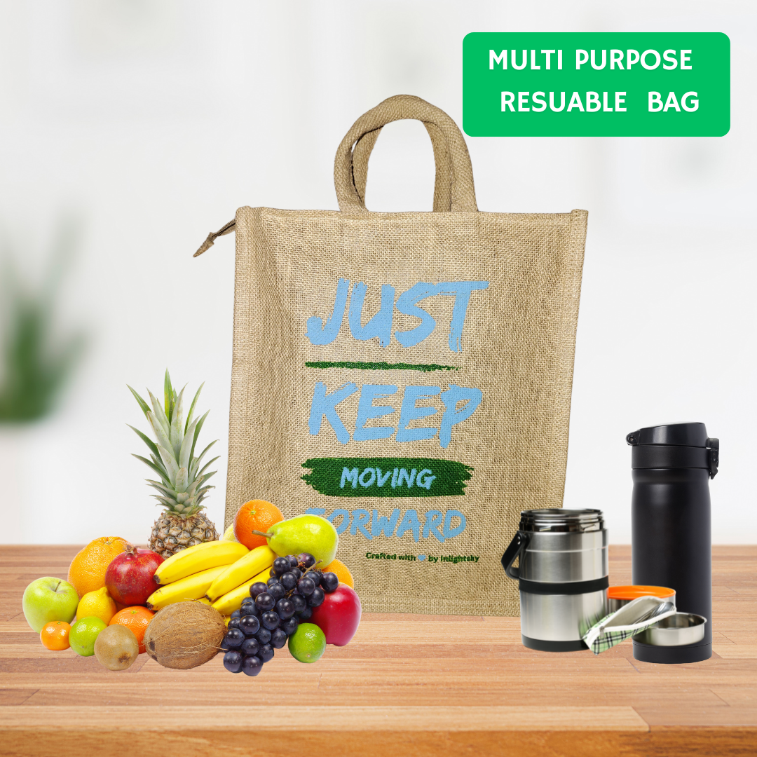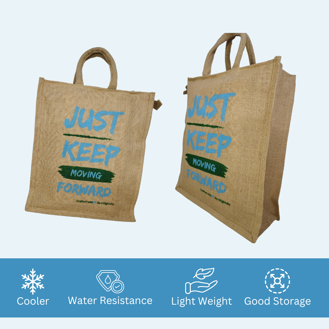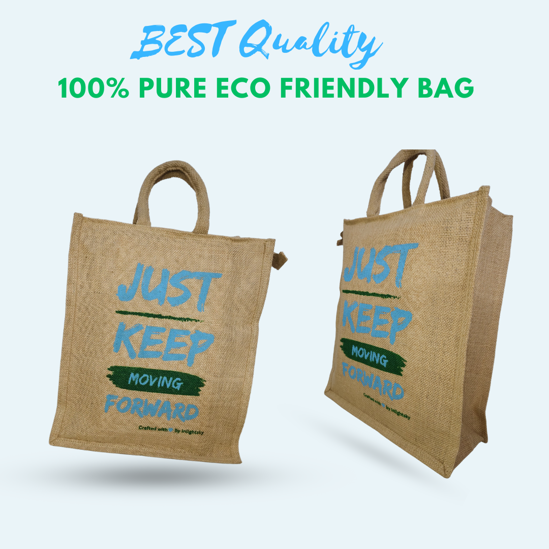 Inlightsky Eco-Friendly Jute Bag – Durable Reusable Tote with Inspirational “Just Keep Moving Forward” Design, Perfect for Shopping, Work, or Everyday Use